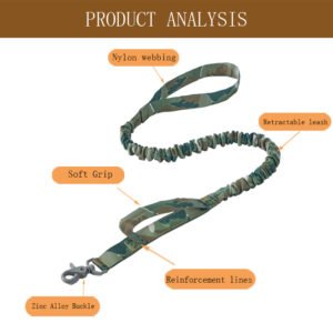 Tactical Dog Leash – Camouflage Elastic Military Heavy-Duty Nylon